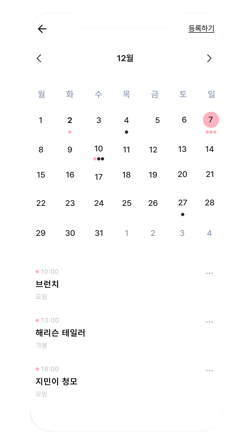 중요한 일정들과 주요한 순간들을 꼼꼼히 기록해 보세요 !